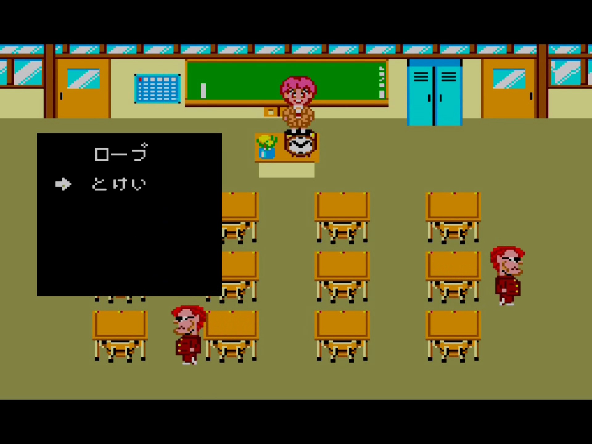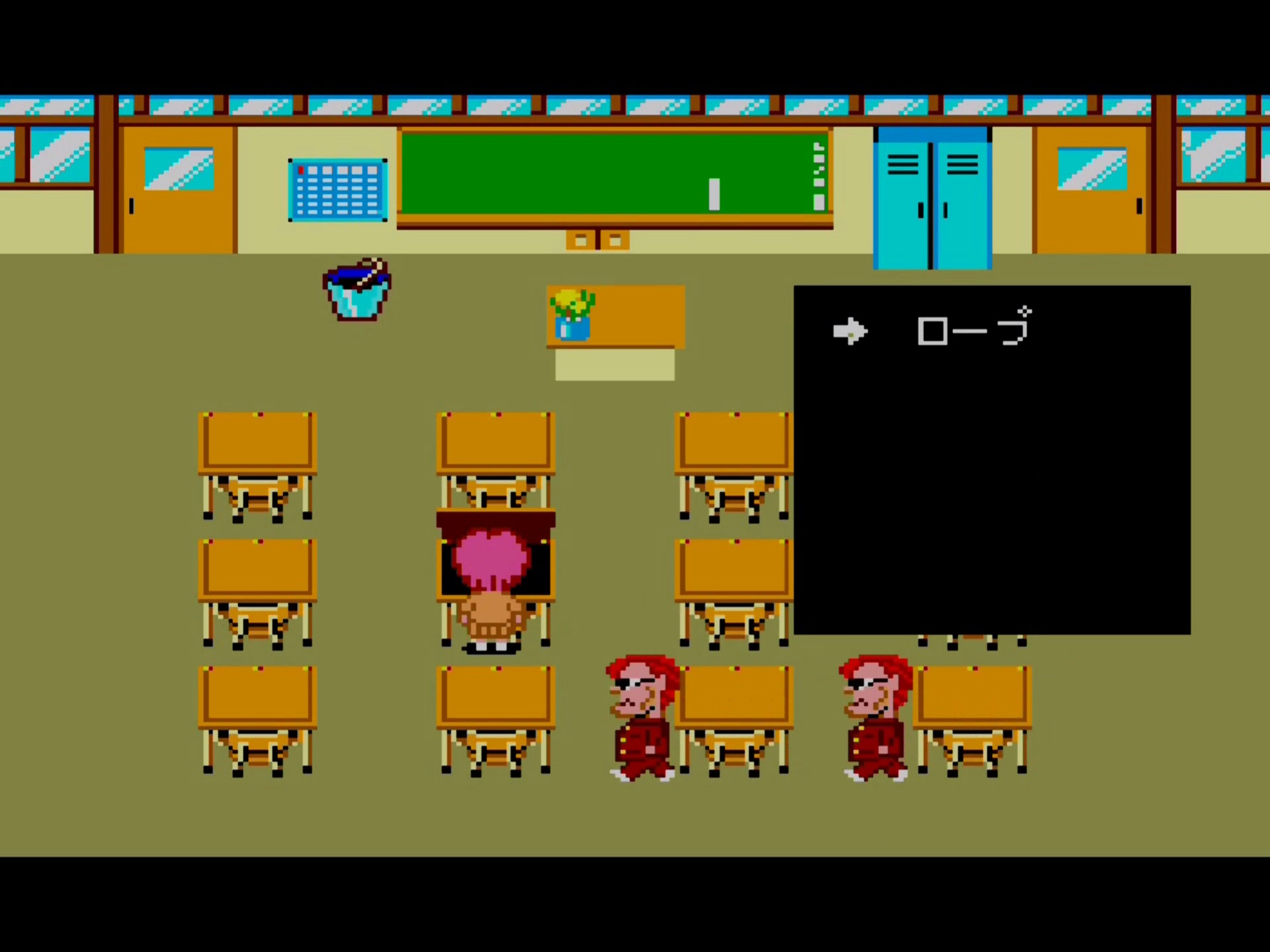 Allez maintenant dans la Classe C pour attraper le dernier membre des loufoques. Utiliser la bouilloire et allez le capturer avec la corde.