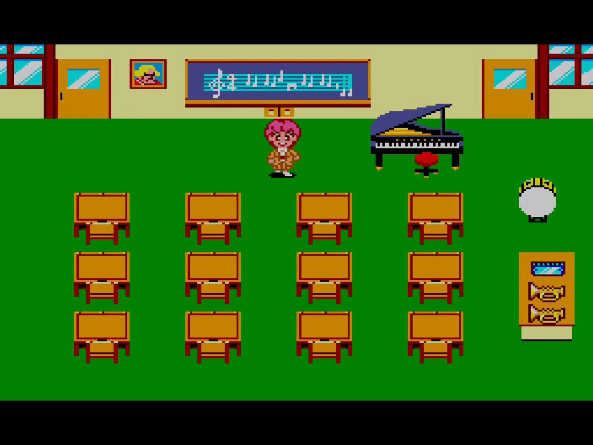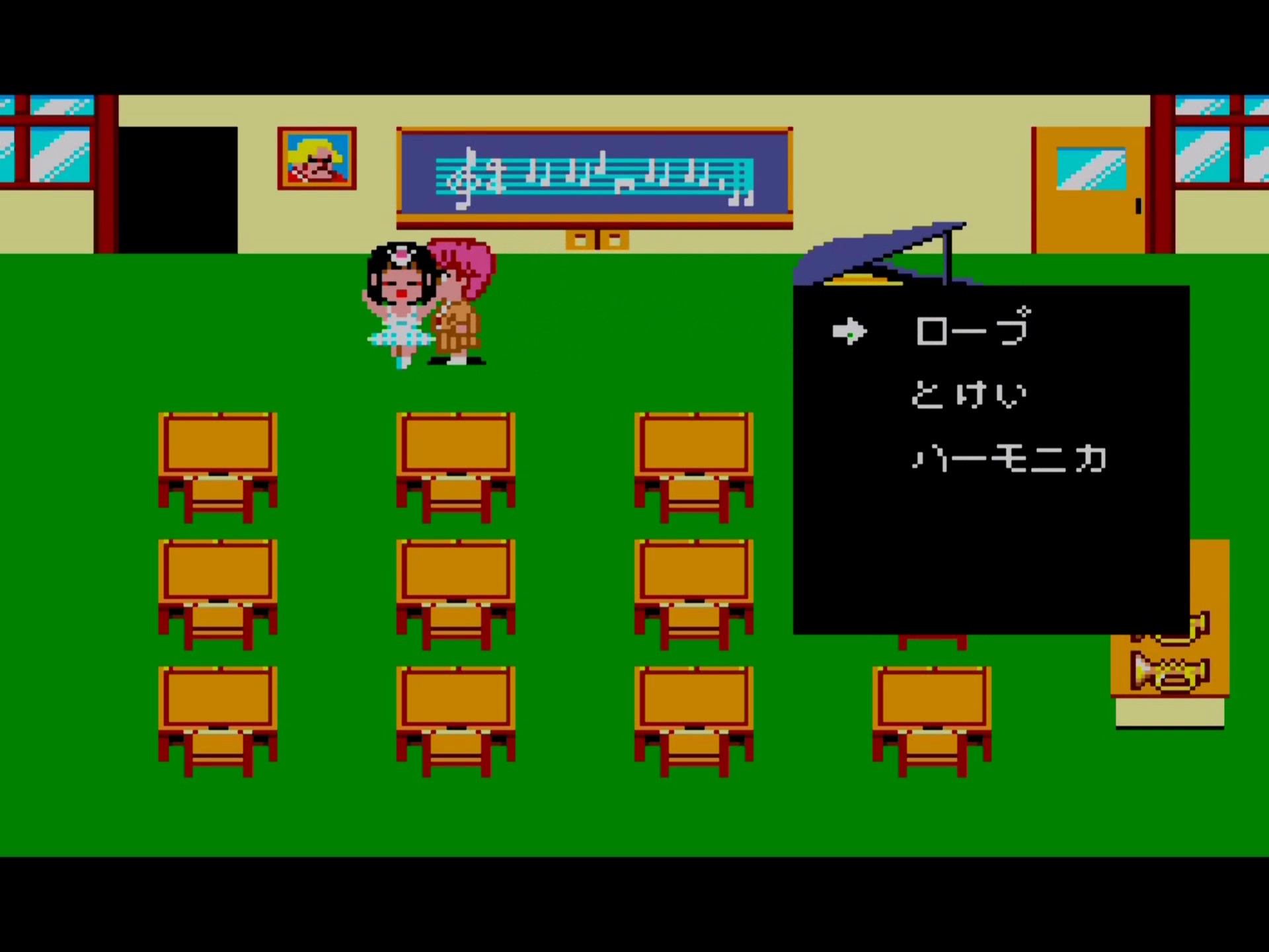 Maintenant, aller dans la salle de musique. Prenez l’harmonica sur le bureau de droite, puis aller au piano et appuyer sur 2.