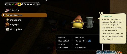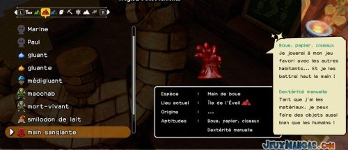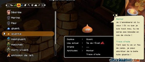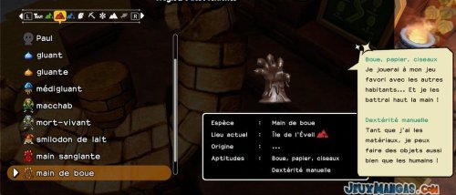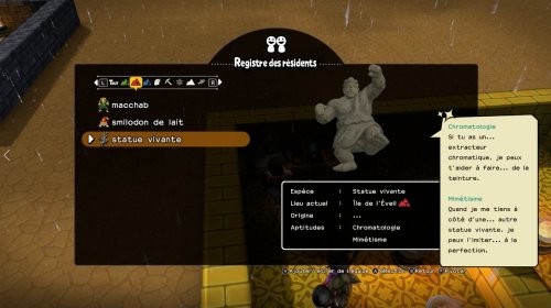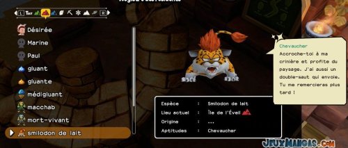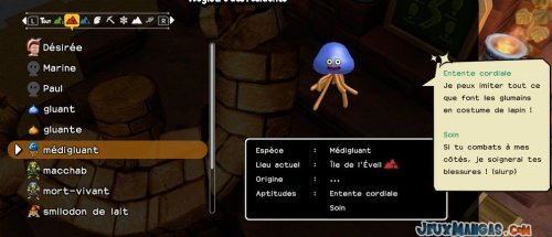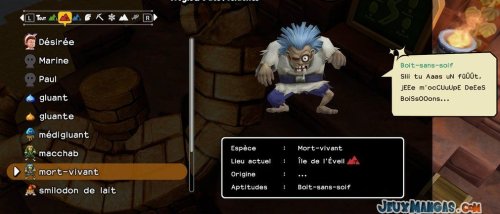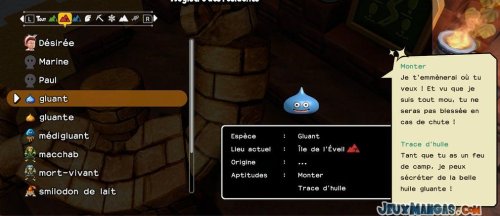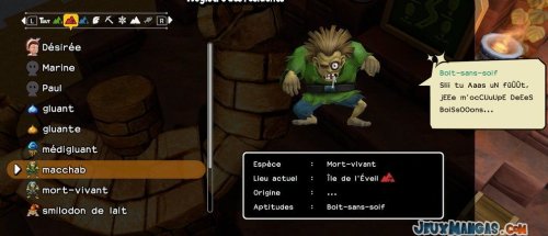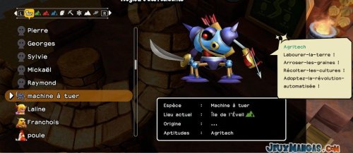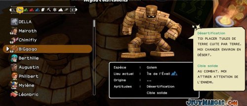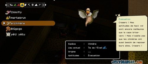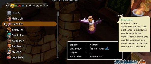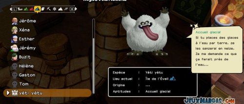Chaque monstres possèdent ses propres aptitudes, que ce soit pour les déplacements quand vous les prenez dans votre équipe, ou alors en terme de compétence dans la vie quotidienne auprès de vos résidents.