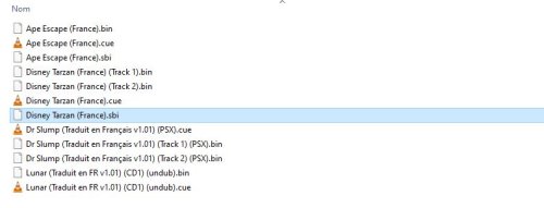 Je copie à présent le fichier sbi dans le même dossier et je le nomme de la même façon que les fichiers bin/cue du jeu :
