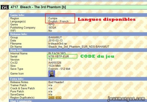 Recopier le code du jeu dans le moteur de recherche et vous arriverez sur la fiche détaillée de la Rom :